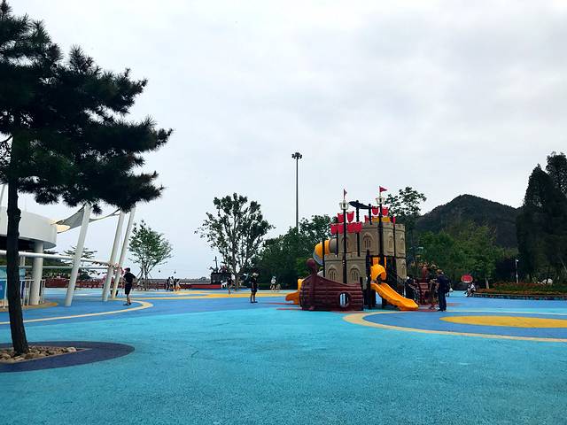 3.这个海洋公园距离海边也非常的近,真的是山海互映,公园里就有沙滩,我家小妞在沙滩上捡石头就玩了很久