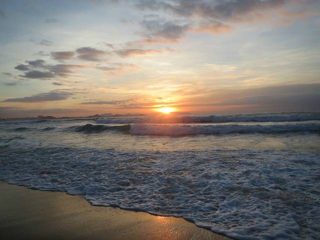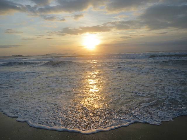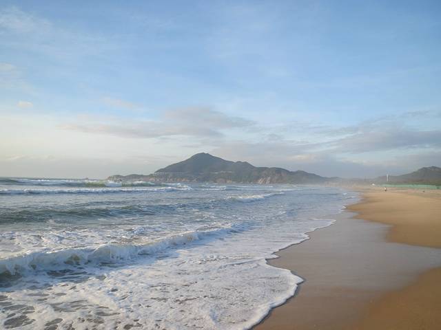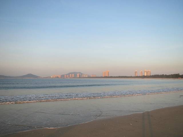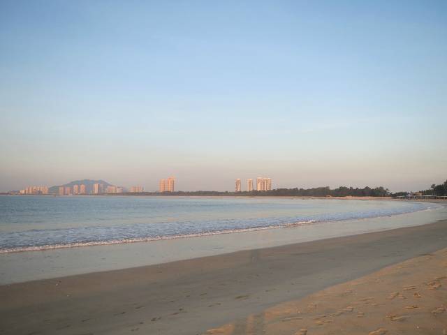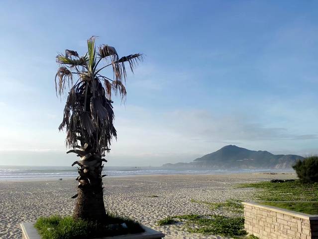 因为酒店距离海边很近所以五点多我就早起去看日出了。早晨的海滩与我们平时看到的海滩不一样,除了海浪声一切都是那么的宁静。提着鞋子赤脚走在柔软的沙滩上面,清爽的海风拂面而来,让人心旷神怡。