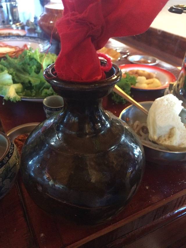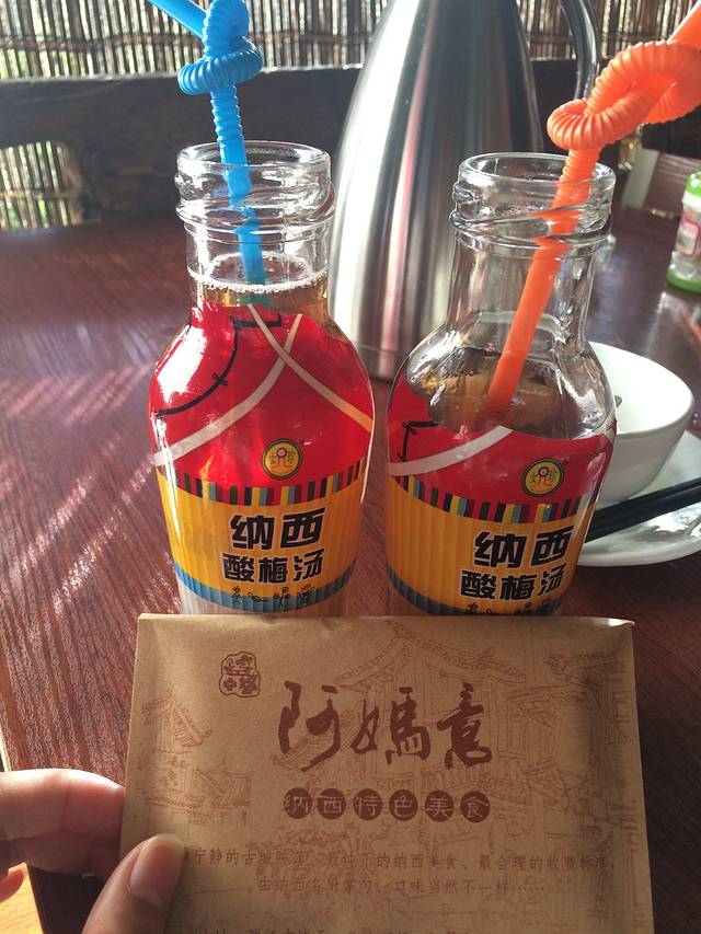 在束河里面一家吃饭的餐馆,听说他家的酸梅汤很出名,特意几个人去跑进去喝。