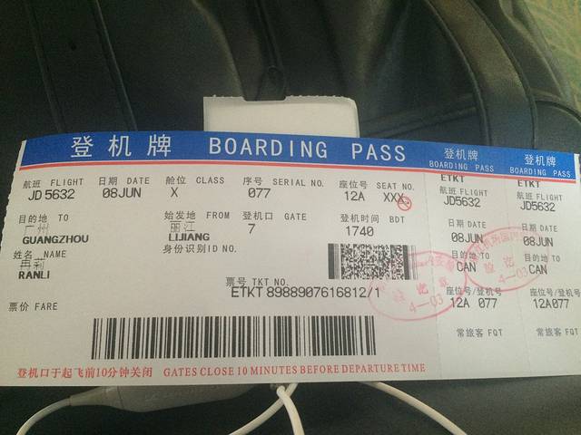 (6月8日)jd5632航班;丽江—广州18;10-20;35