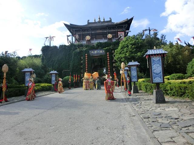 去的时间刚好赶上天龙八部影视城开门,有大理皇上出来迎接额!