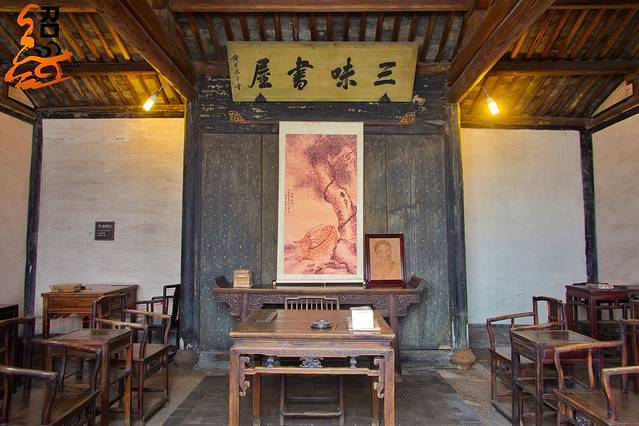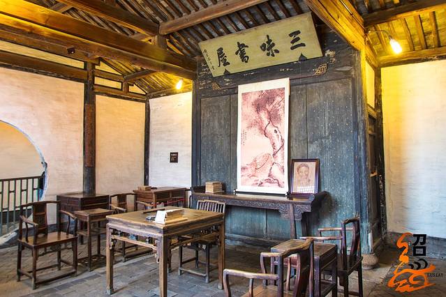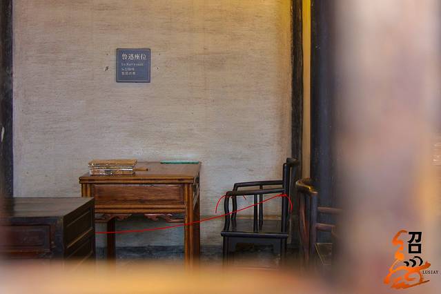 正前方的“松鹿图”,是“福禄寿禧”的意思。鲁迅的座位在书屋的东北角,鲁迅在桌子上刻下的“早”字还依稀可见。