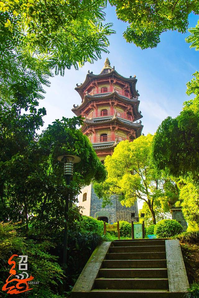 蕺山山顶文笔塔,又名王家塔,是蕺山的标志性建筑,与府山飞翼楼、塔山应天塔成三塔鼎立之势,构成绍兴古城上空的美丽画面。王家塔可顺梯登高,是绍兴城内登高望远的又一绝佳之地。