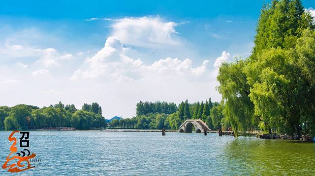 柯岩游玩结束可以乘船去鲁镇,船在鉴湖游行,蓝天白云,清水绿水,惬意十足。