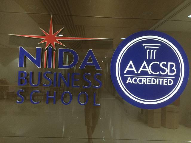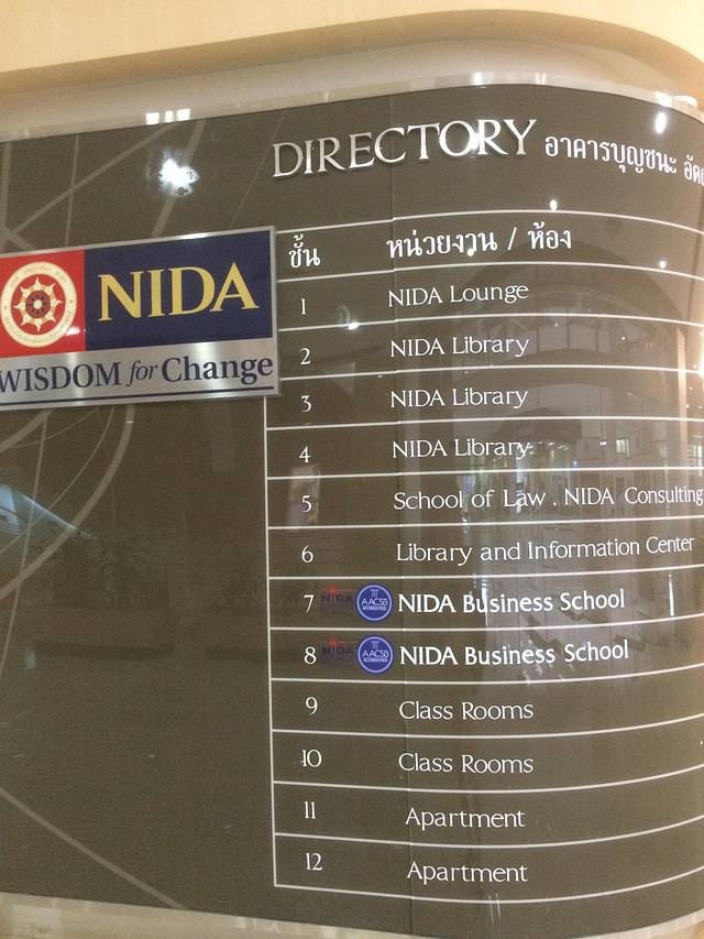 进入学校挺拔庄严的办公大楼后,由于时间紧迫,来不急参观学校便紧迫的向报道部走去。在领取了资料,明白了接下来该做的事情流程后,找到另一栋大楼的底楼稍作休息,同时想办法网上注册。此时,发现这里的每一个工作人员都穿着有NIDA标志的工作装。心想:这是他们的工作素养吧,展现研究院的规范严谨的学术风貌。再之后,遇到了友好的NIDA员工(国际事务处职员)P’phanu,不仅帮我找了台电脑注册,而且在我注册遇到问题的时候,直接帮我打电话给学生事务处的工作人员修改、核对基本数据。再此,给NIDA的他点赞!再次感受到了泰国人民的友好和热情!