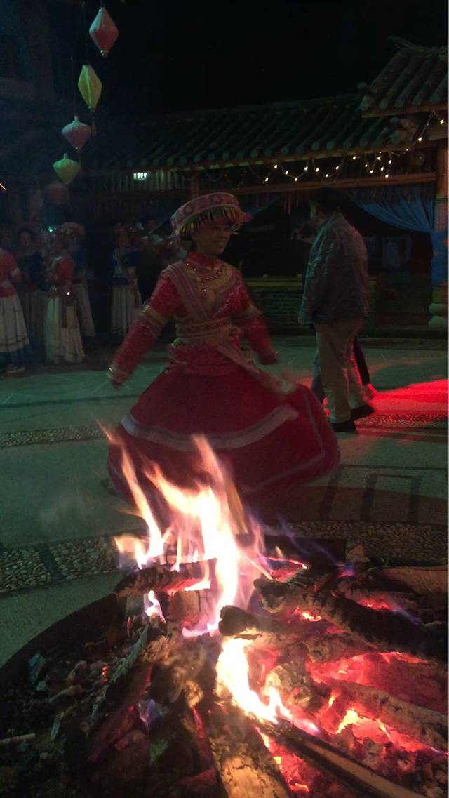 晚上从山上下来,参加当地的火把节