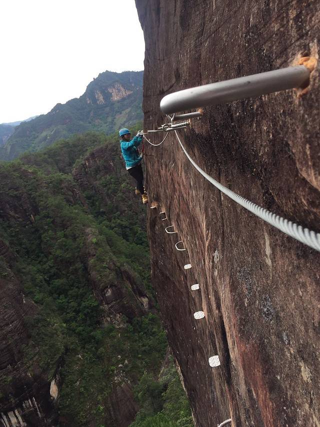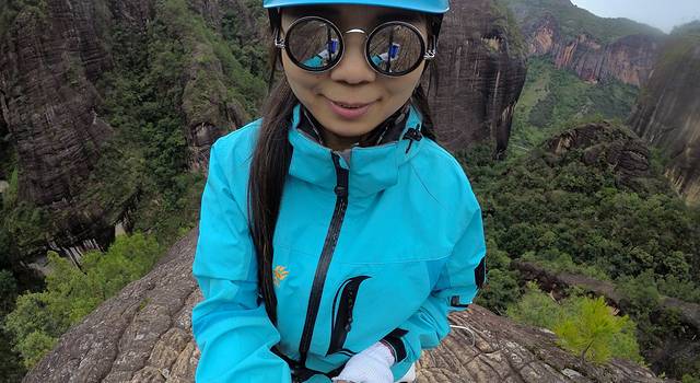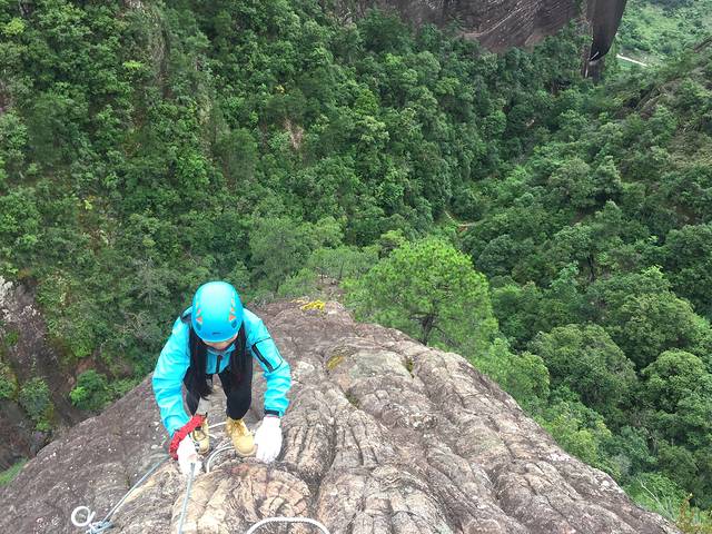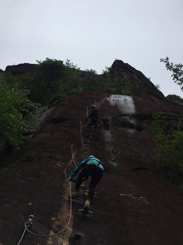 第一次接触攀岩,看见笔直的山、还是有点害怕的
