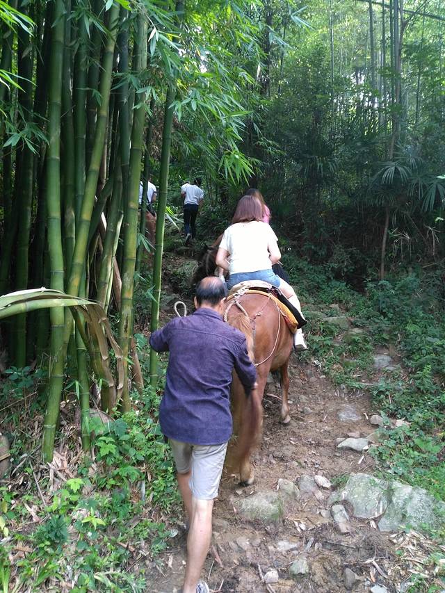 才行不久就遇到五六个骑马的游客,由马夫牵着马,看起来相当的危险。骑马虽然快,但无法走走停停欣赏发现林中的美景,有体力的游客最好步行。