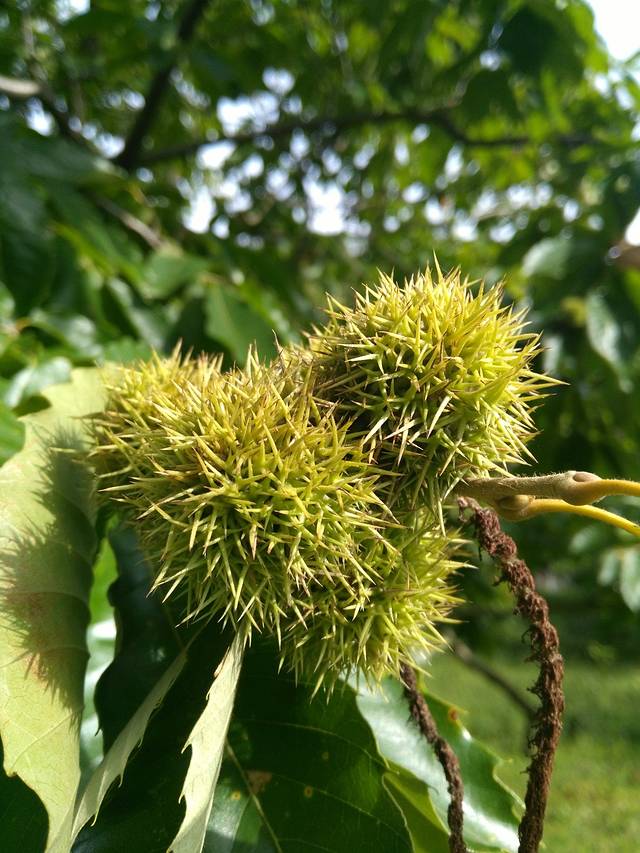 用过早餐顺大路下行,经过回龙寺,行至友好往来农家乐。途中发现有几棵栗子树。
