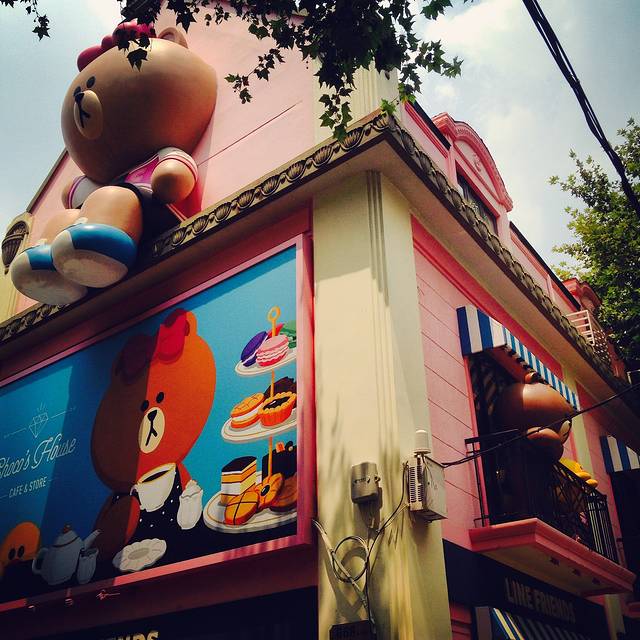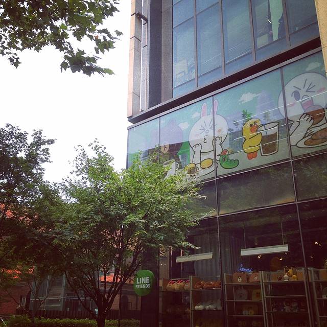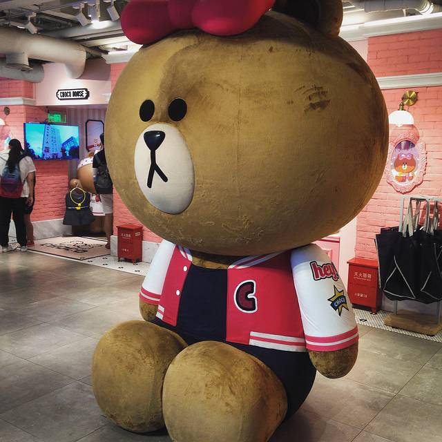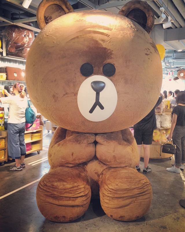 在无印良品吃了一顿极健康的午饭后便出来了,听同学说这附近有一家LINE什么的,反正也没什么事就决定去看看,过个马路走个三两分钟就到了,外观很好辨认,一只熊坐在房顶。