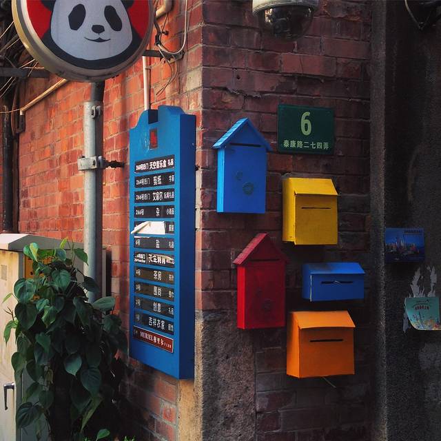 本次旅行的第一站就是田子坊,出了房间,下了楼,全家里买两瓶水,走几步就进了地铁站。去田子坊期间也要换乘一次地铁,十二号线(金海路方向)到嘉善路下车换乘九号线(杨高中路方向)打浦桥站下车,一号口出,过了马路就进了田子坊。由于来得太早,商铺都没开门,但是人很少,听着清晨的鸟鸣,走在很富有老上海的田子坊,还是别有一番风味。而且这样还能以免我看见什么都想买,浪费钱。