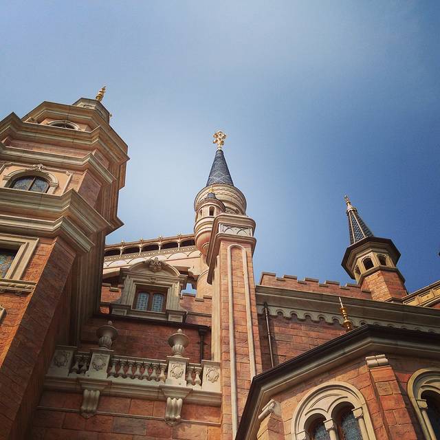 一入园就是各种各样的商店,外观可爱,内心险恶,卖的东西的价格是真的会逼疯你。顺着路走就会看到城堡了。