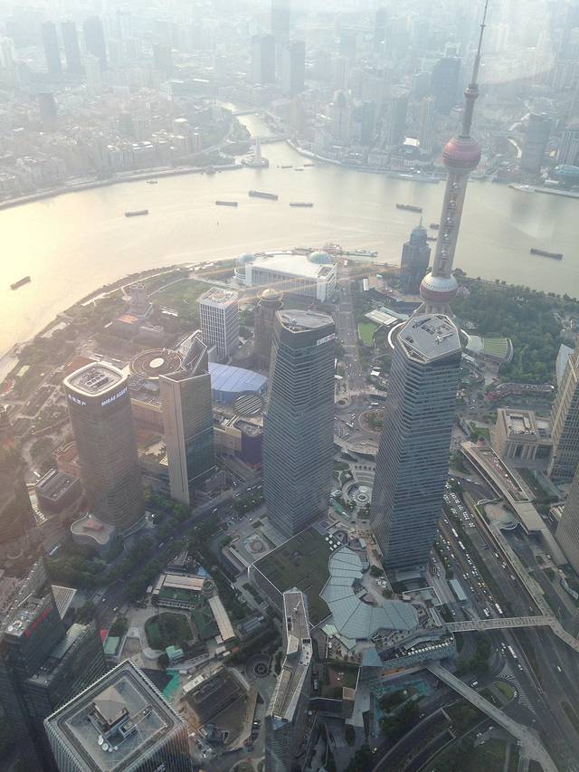 过了安检,拍了照,准备去搭乘18米每秒的电梯,上了电梯,看着显示屏上的速度不断上升,耳朵也慢慢地开始难受,不过咽咽唾沫就好了,终于到了118层,迫不及待的跑到了窗边,完整的大上海尽入眼帘。