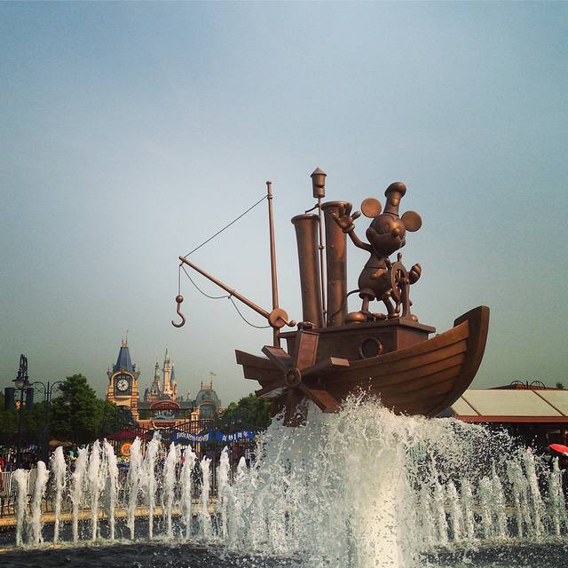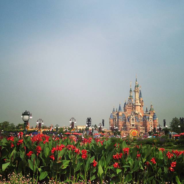 如此精致的城堡怎么能不多照几张。玩了几个项目,并在带空调的休息棚里吃了我自己带的面包,再游逛游逛就到了下午的花车巡演的时间了,赶紧站好了极好的位置,等待着这帮迪士尼“老朋友”的到来。