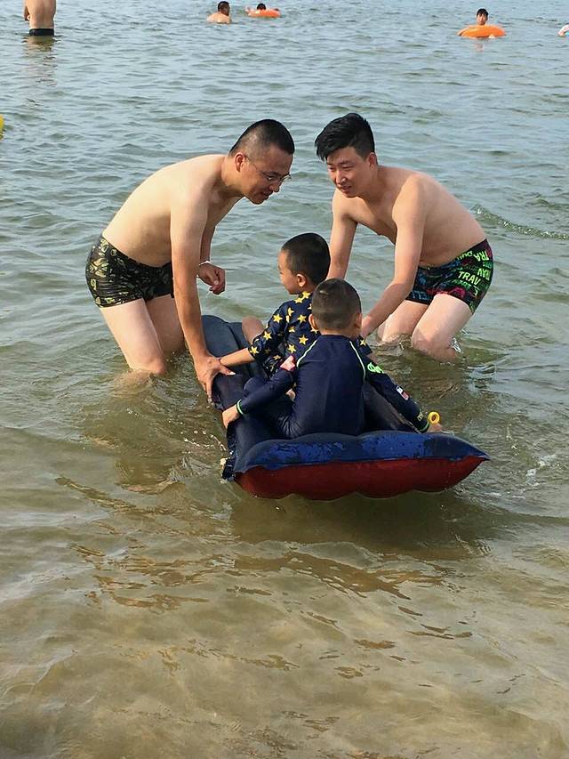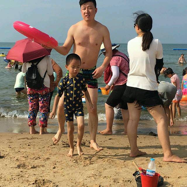 到达那香海海水浴场,据房东大哥说新开发的比国际海水浴场好,那就体验下,找了个租赁吸水娱乐的想借个打气筒,一个字,不借,威海威海!这样对待远方来客不好吧,爸爸们带着孩子玩水游泳,妈妈们乘凉.节气真不是盖的,立秋以后海水真的是很凉,不敢恋战,撤之……