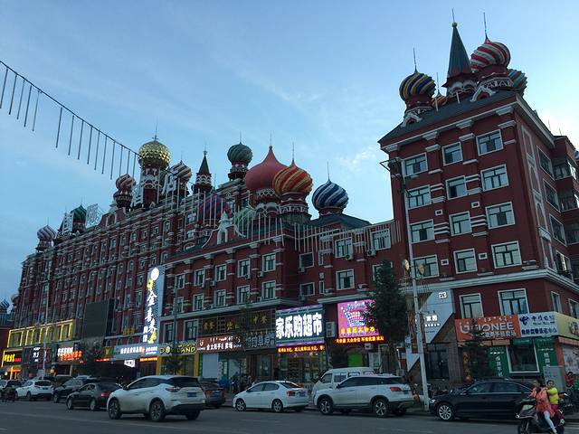 阿尔山温泉小镇上的建筑仿欧洲小镇,都是尖顶红墙,晚上很热闹,可以租三人自行车游览。
