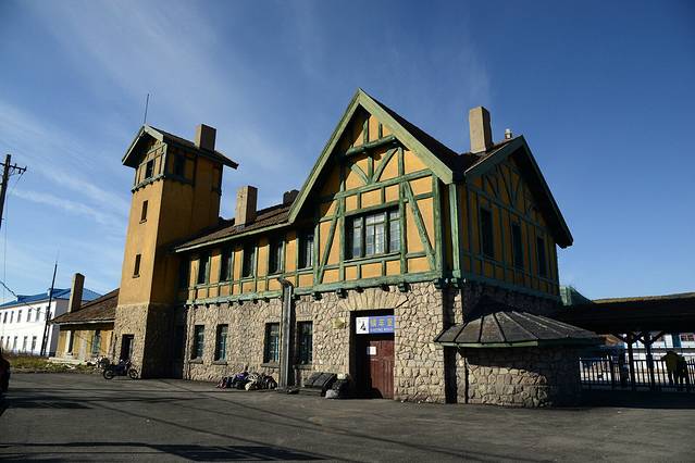 这个火车站是日本人遗留下来的,现在还在使用,很有年代感。很多人在拍照,也有不少带着行李候车的人。