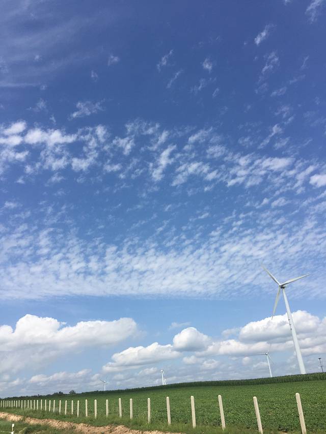 途径白城,很多这样的风车。后来的呼伦贝尔,满洲里沿途也有很多风车。