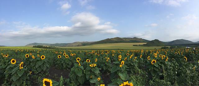 七点出发去阿尔山地质公园,沿途景色很美,山,河流,松林白桦林,大片的向日葵,油菜花田,麦田,可以在蜂农那里买些蜂产品。午餐自备的面包香肠等食品,边玩边吃。两点出发去海拉尔市,五小时后到达。
