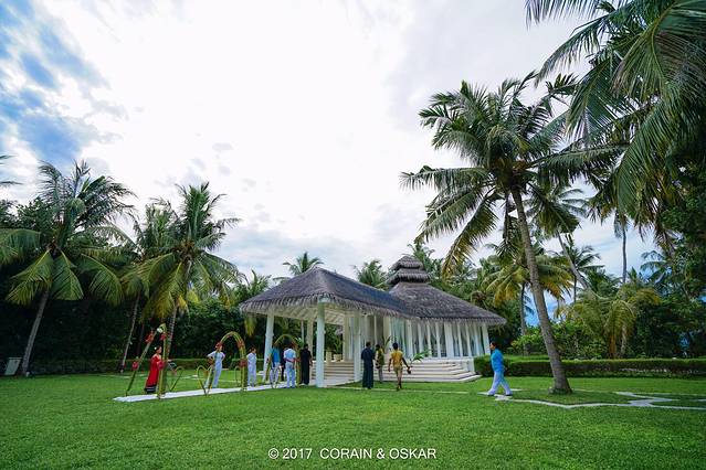 碰巧当天岛上的白色礼堂又新人正在举行婚礼,索性就一起过去凑个热闹看一下,顺别给个祝福咯