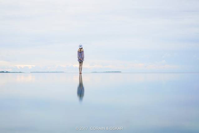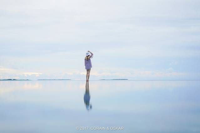 蓝天白云,加上深浅不一但又清澈见底的海水,让人少女心爆棚