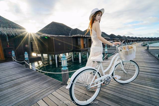 如果你也选择了阿雅达岛,那么推荐你一个装小清晰的拍照利器,顺便也是个超级实用的家伙,那就是自行车啦。租金10美元一天,因为岛也比较大,从水屋到餐厅,还有酒吧距离都比较远,而如果每次出行都叫管家开车来接,会浪费很多时间,所以一辆好看又实用的自行车成为了我们这几日最主要的出行工具和拍照道具