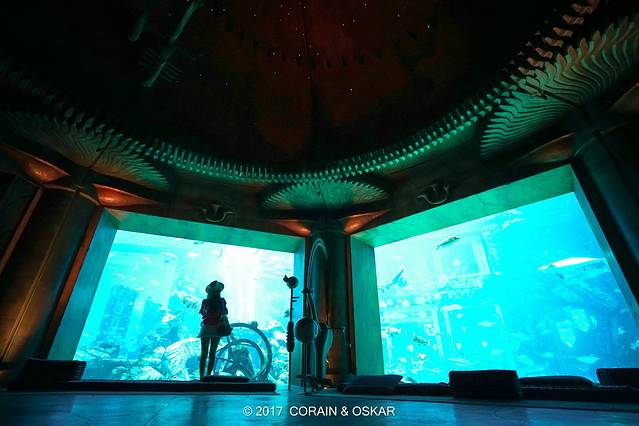 而整个的水族馆设计,和内部的装修风格融为一体,真的很佩服设计师的大胆想象力和巧妙的构思,真的让人完全沉浸在一个失落的世界之中,非常棒的体验。