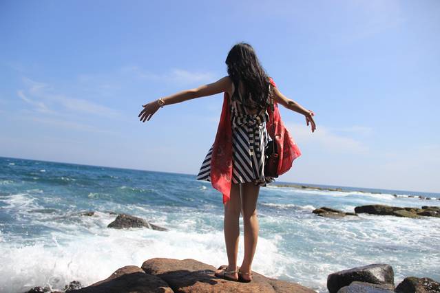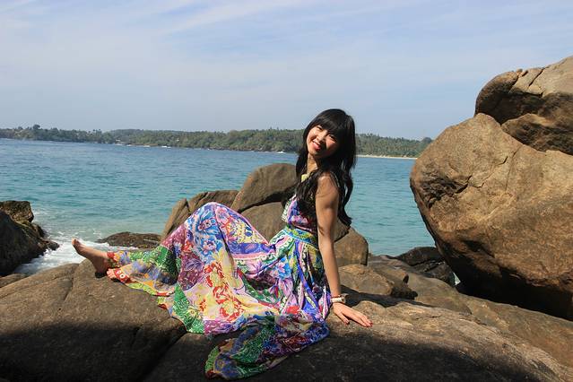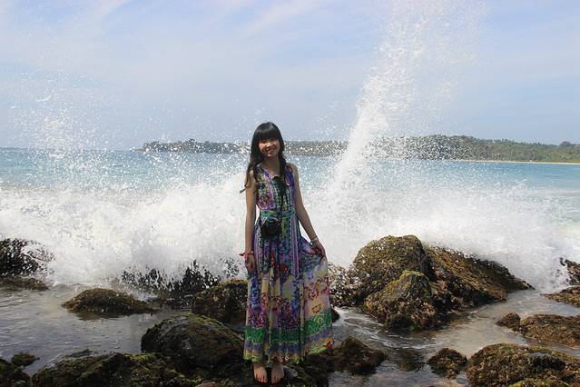 这个沙滩有一边布满岩石,需要慢慢爬上去,不过你看我穿长裙都可以爬上去就知道不是什么问题了!最大的问题是,好晒好热啊!!!