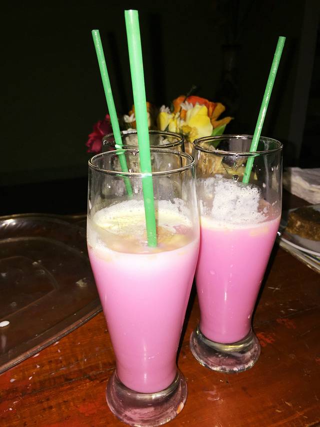 去到Sujeeva家,把我们在超市买给他的东西送给他,以表今晚接待我们的礼物~而他老婆便呈上了下图的特制饮料给我们,超好喝的,虽然有点甜~而特制的小吃也不错!