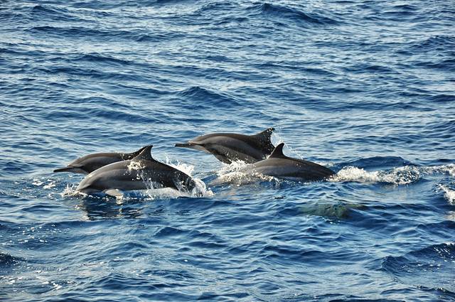 出海10多分钟,便看到海豚群了,兴奋了好一会儿~离海豚真的好近啊!!