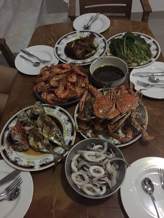到了5点多,我们本来是想去沙滩上的海鲜餐馆解决晚餐的,可是问了好多家都觉得特贵而且海鲜还特别不新鲜,所以我们溜达到了沙滩外,惊觉有一家卖海鲜的小市场,打电话回去问了home stay 的主人我们是否可以晚餐在他那煮海鲜,经得同意后我们都兴奋地去买海鲜啦!那个激动啊!!!自己买海鲜的价格是Mirrisa Eye之流的五分之一好吧!