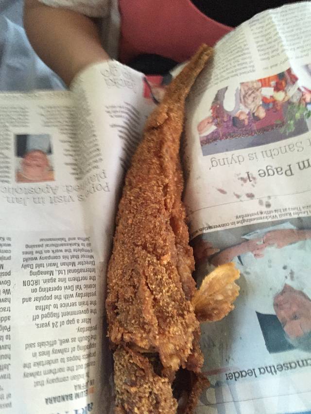 吃完午饭经过Tissa Lake,我有点惊呆了,美啊!!!!应该在这里消耗半天才对啊!突然Sujeeva说要停车买点东西,我们还纳闷呢!谁知他买了几条炸鱼说请我们吃!我们吃了一口便说,“可以再帮我们买多几条吗?太好吃了!”美味啊,外酥内嫩呢!现在想想也不自禁地吞口水呢!