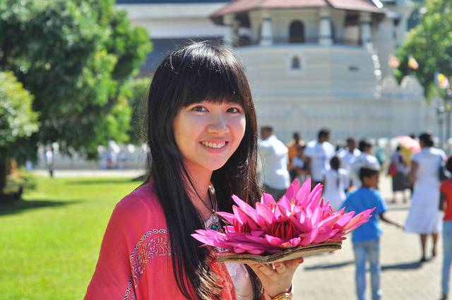 在佛牙寺侧门,便有许多卖莲花的,我手上这朵要250LKR,看到茉莉花那么漂亮,还要求他撒几多在莲花上面~~~