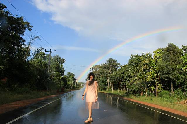 本来一路都是大晴天,可是慢慢靠近,一大多乌云也不停追赶我们,待它迫近我们时,倾盆大雨就骤然落下!本来我们还想,干嘛这样啊,一到就下大雨!!!!可是一刻的时间,蓝天重新出现,附带了double rainbow!!!!