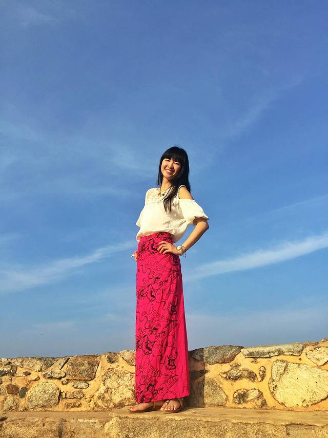因为古城很多temple是有着装要求的,裤子或裙子至少要到小腿肚,不然是需要用丝巾围住的,而且因为当天要骑自行车,同行的小伙伴们又怕晒黑,所以他们基本是长裤上身的,而我嘛。。。因为自行车不熟练,所以就坐上小导游的摩托车环城啦!不用出卖劳动力还可以帮她们照相,太棒啦!!!