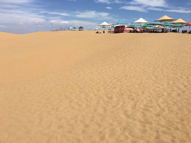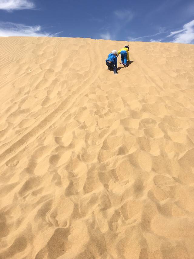 响沙湾沙漠,应该是去内蒙古必到的景点,感叹这沙漠的漫无边际啊....一天行程下来带宝宝时间把握的真的很好,我建议带宝宝的话,玩一个岛不至于那么累,如果想玩两个岛的话建议在那边住一晚,还可以看到日落,第二天起来,再去悦沙岛!我们从呼市的7点大巴出发,到那边差不多9点!沿途小朋友们很乖,都睡着了!我想着这样也好,睡两个小时等下就可以尽情的玩耍了!仙沙岛可以玩的项目很多...先骑骆驼 骑完骆驼直接去玩儿高空滑索 如果超重或者体重不够的就别去排队了 其他项目有摩托车 过沙车 轨道自行车 高尔夫球等 这些不限次数 玩累了就可以吃饭 吃完饭继续玩儿 下午两点果老剧场有杂技大世界 我们基本把该玩能玩的都玩了...下午4点左右乘坐冲浪车前往滑沙场滑沙 ,但是我们也只能看,因为俩宝不够格,太小了!建议小伙伴们,下次可以自己带个滑沙板,随时在沙漠的陡处可滑,我们是去了才知道...给以后去的小伙伴做个建议...