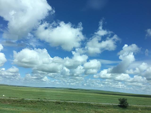 一路上的风景美得一塌糊涂,据说还不到最深处的草原,还是周围拍拍的,让我这个第一次见草原的宝宝心情好激动啊...那个美,那个辽阔,那个壮观.那个舒心,那个马,那个牛...然后我前面的那个小伙伴,已经拿着她的单反在捕捉的拍着,我就拿着手机随手拍几张,发现单反的效果还是甩手机相机几条街的,哈哈哈哈...美不美...我就问你一句话,美不美...哈哈哈哈!那两个小朋友一上车不到一会儿也是睡着了!!!两个小时下车了!我们住的是西乌旗车站的宾馆叫禹王帝都商务宾馆!相信大多数网友的推荐还不错,去一个不认识的地方,我觉得攻略一定要做好!即使不知道,也可以稍微大概的了解一下!办理了入驻手续,然后迫不及待的就去吃饭了...真想说,除了羊牛,还就是羊牛肉了...我感觉我这几天耳朵里听的都是羊羊羊,牛牛牛...突然好想吃蔬菜!