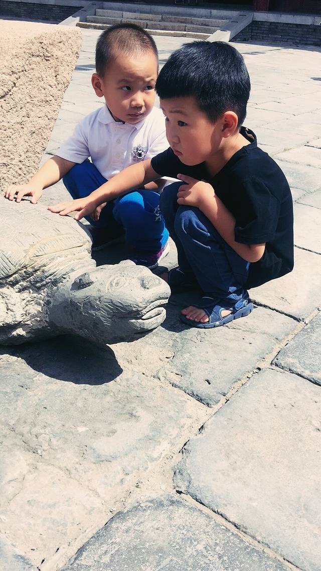 据说摸摸它,就会给你带来好运🍀,所以两个家伙一直在不停的摸着龟壳!哈哈哈
