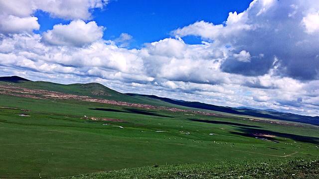 两旁的草原....一条路...穿梭在草原上,幸福呀...