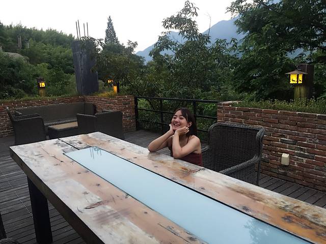 来到酒店的崖边山泉游泳池,经过一天的日照,水温宜人。
