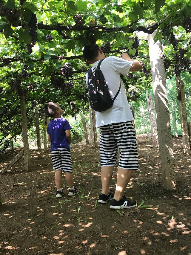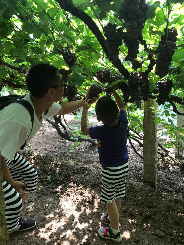 野生动物园出来之后,去昌黎葡萄沟采摘葡萄,途中找了一家餐厅吃饭,因为经过村庄,行车大概一小时,到达葡萄沟附近,沿途都是卖葡萄的,3-4块一斤不等。被路边一大姐拦住,让我们到他家摘葡萄,禁不住一个劲跟车追,只好跟着去了她家,LG看看她家葡萄还可以,而且觉得附近也无非就是大同小异,决定就在她家了。前前后后摘了有20多斤,4块钱一斤。玫瑰香和巨烽两个品种,都不错,装了两箱后结束了此次秦皇岛之游!