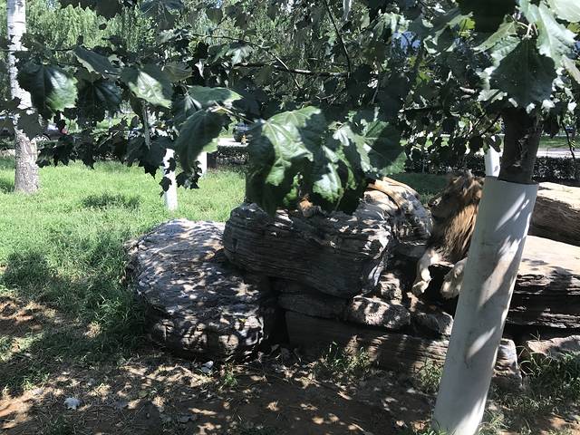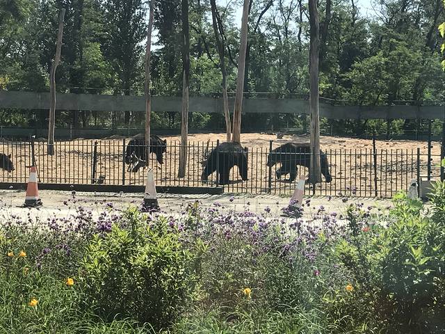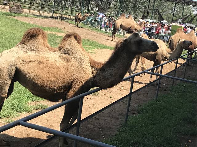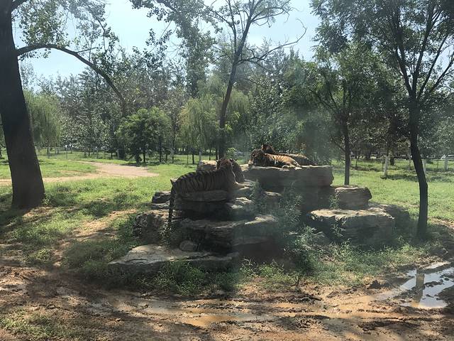 步行到象苑火车站,座小火车看野兽!队伍依旧排的长长的,有工作人员在喊可以花20块钱坐火车头,不用排队等等~~这点感觉很不好,总感觉想各种办法收钱。上了小火车,慢慢行驶在野兽区,不知道是天气太热还是临近中午的原因,动物稀稀拉拉、懒洋洋的趴在地上,途中很少的讲解,也就是说什么到了非洲野兽区、到了熊区之类的很简短介绍~~对于一岁就去过北京大兴野生动物园、两岁去广州长隆野生动物园、北京动物园更是去过若干次的可可来说,这里的动物真是少的可怜,也没有什么特别吸引人的。所以,不是很建议去~~不如海边游游泳、玩玩沙子!