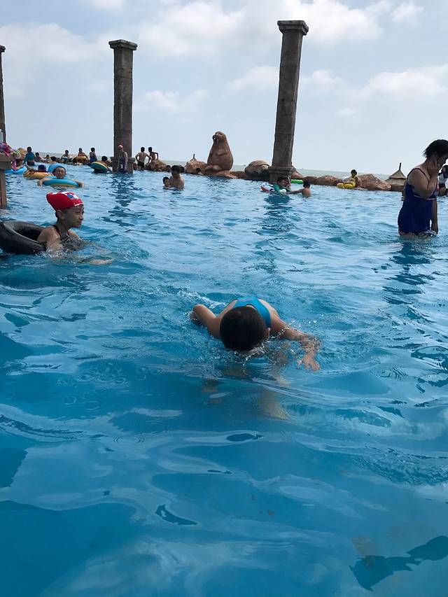小孩玩的太高兴了,11点了还不要走,最后说去泡温泉才勉强跟着走了,不过看到温泉又开心的要死,几个蓝蓝的温泉池,海天一色的感觉,水温明显变高,扑通扑通跳下水!