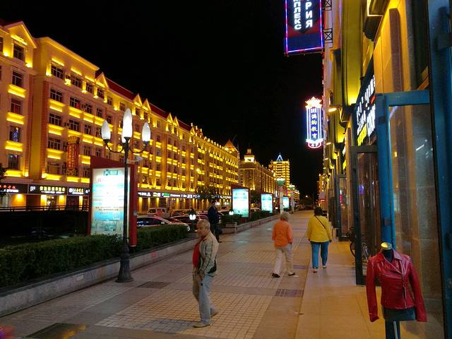 满洲里市夜景,因时间已晚,游人浙少。偶尔碰到几个歪果仁。