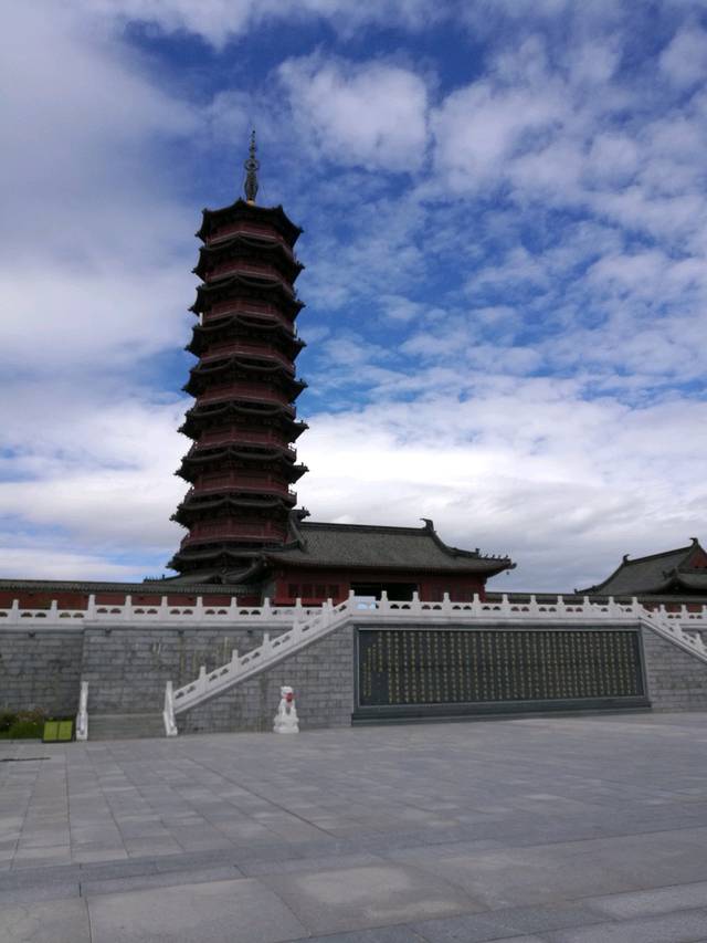 兰天白云下的万佛寺内的神塔