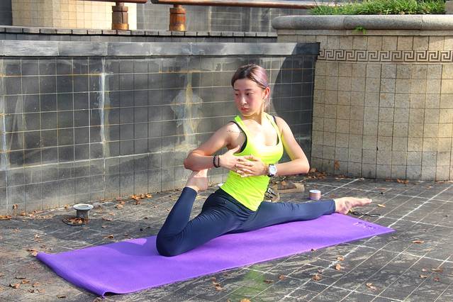 按照前一天预设的时间,第二日一大早,早起观摩瑜伽练习,学习几个简单的动作。