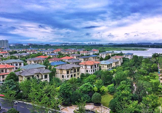 推开阳台远眺,一汪湖水旁,一栋栋别墅挺立,俨然成了一道靓丽的风景线!