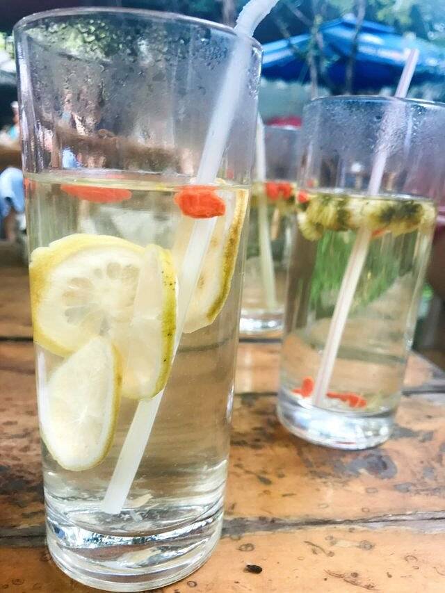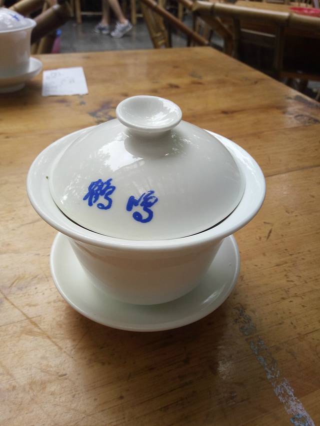 鹤鸣茶最便宜茶是13元,我们点了柠檬茶和菊花茶,为玻璃杯,给你水壶,自己添,一茶一坐,碗盖茶挺贵的,我们只是来玩玩,休息了一会就走了