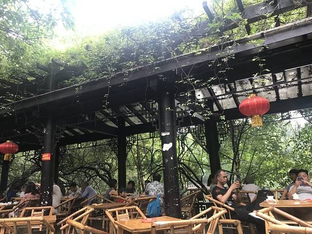 人民公园里面有鹤鸣茶社和钟水饺,这两家店比较有名,而且公园就在宽窄巷子的附近,骑着小黄就过去了~