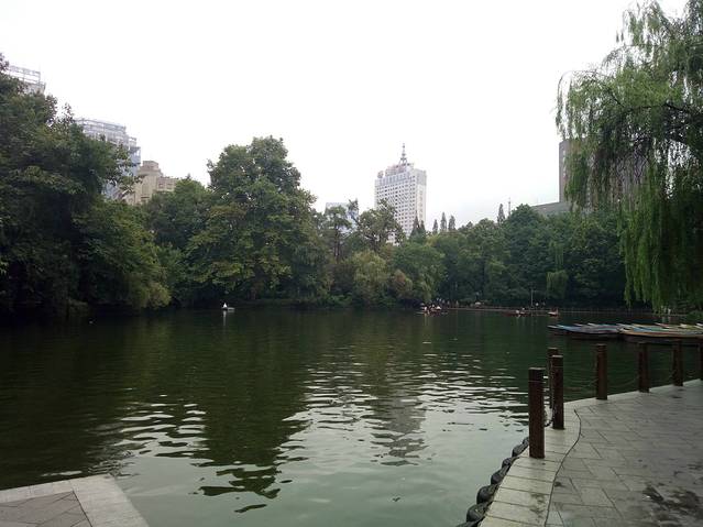 公园一角,喝茶的时候有不少人在湖里划船,价格不贵~